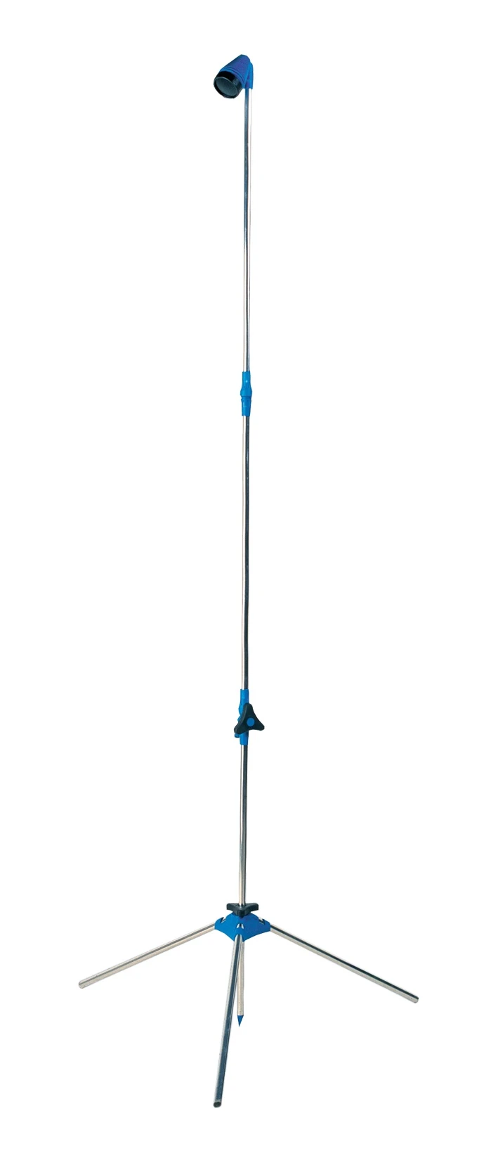 Deze voordelige zwembaddouche geeft alleen koud water. De douche is aan te sluiten op een tuinslang. De douche staat op een standaard en is makkelijk op te bergen. De douche is gemaakt van aluminium.