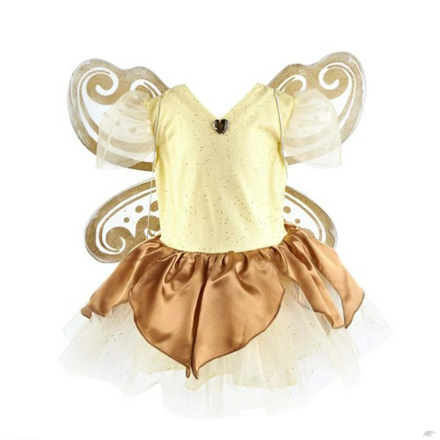 Met deze jurk lijk je zo uit een sprookje gestapt! Dit schattige jurkje is geïnspireerd op een kruselings-pop en bestaat uit een jurkje met bruine tule en een beige lijfje. De leuke vleugels maken het plaatje compleet.