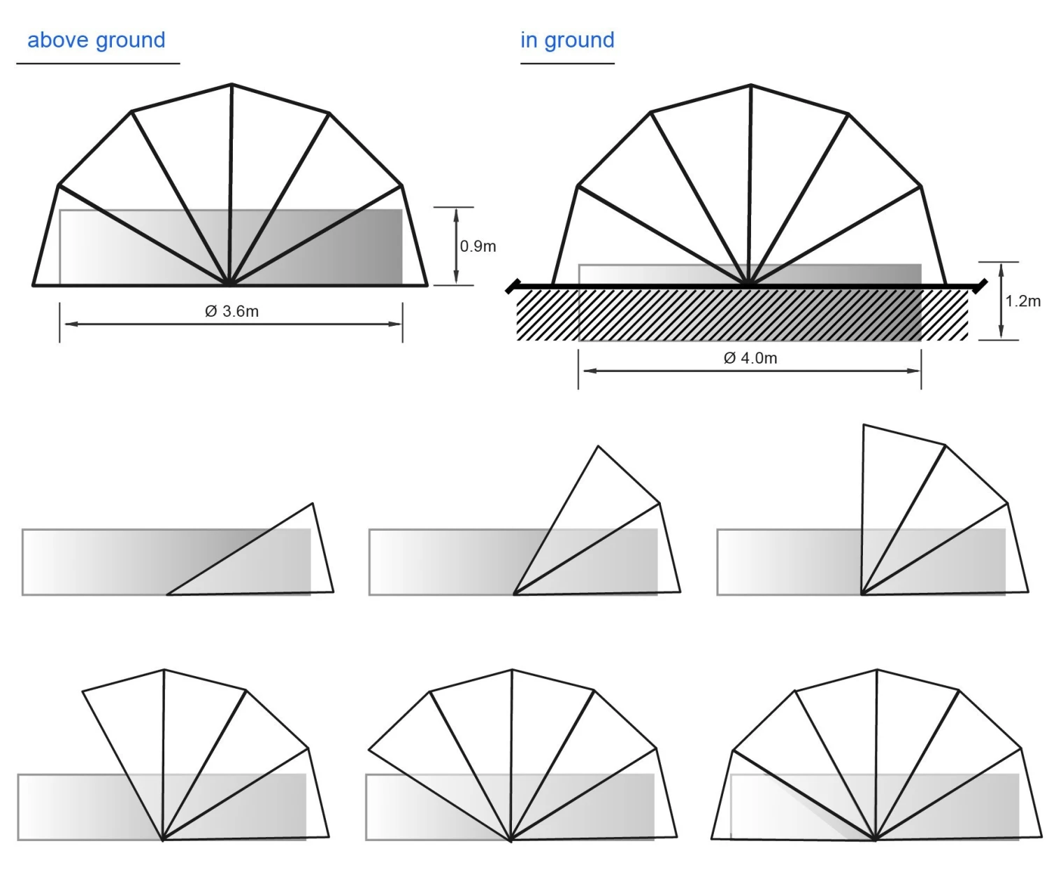 Afmetingen dome: Ø 440, hoogte: 220 cm